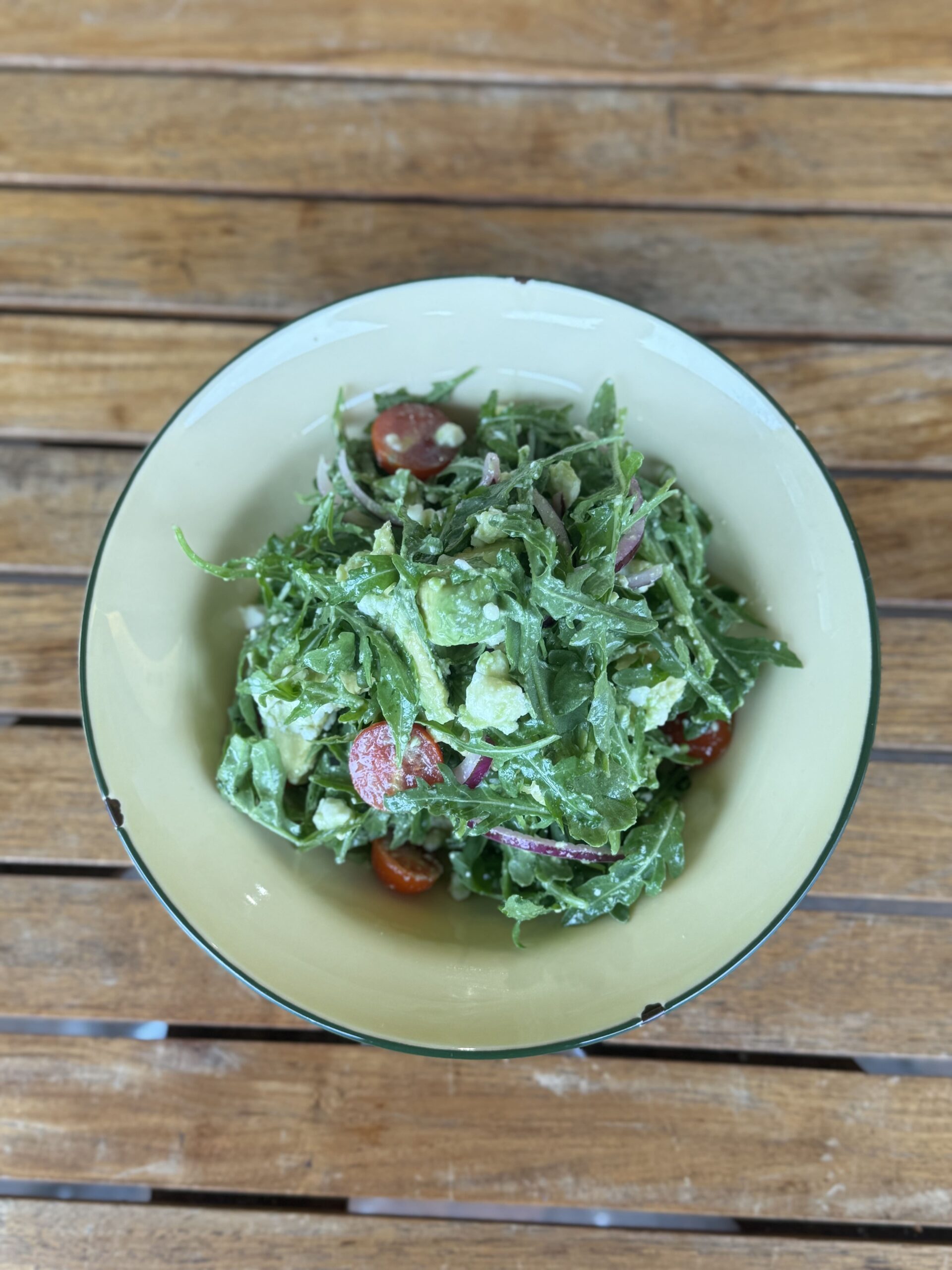 A refreshing combination of peppery rocket leaves, crumbled feta cheese, cherry tomatoes, red onion and avocado, coated in our zesty dressing.